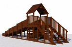 Игровой комплекс UNIX Kids – это прекрасный подарок детям. Надежная игровая конструкция для улицы изготовлена из ангарской сосны. Предназначена для детей от 3-х лет. Детская площадка предназначена для установки на загородном участке в личное пользование. Конструкция не требует бетонирования каркасных стоек, устанавливается на подготовленную поверхность и держится за счет собственного веса. Под городок требуется участок поверхности размером 375 х 370 см. Основа городка – деревянная башня высотой 265 см. На высоте 115 см установлена игровая площадка с ограждениями. Сверху башню закрывает двускатная деревянная крыша. Нижний ярус башни можно использовать под небольшую песочницу. Горка длиной 220 см изготовлена из пластика и имеет прекрасную скользящую поверхность. Боковые бортики обеспечивают безопасность малышей. Дополнительными элементами для развлечений служат скалодром, обычные подвесные качели и с гнездом размером 100 см, а так же веревочная лестница. Все элементы городка обработаны пропиткой на водной основе. Древесина надежно защищена от воздействия окружающей среды. Комплекс возможно использовать круглый год.