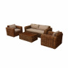 Комбинация из двух или трехместного дивана и кресел поможет распланировать любую площадь в единой стилистике, а удобный кофейный столик дополнит композицию.