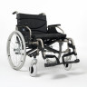 Кресло-коляска инвалидное Vermeiren 9301 с санитарным оснащением обладает невероятно крепкой металлической рамой. Материалы изготовления отличаются высоким качеством, они огнеупорны и легко подвергаются чистке. Для санитарных нужд также имеется специальное отверстие, а под сиденьем имеется лоток из ПВХ. Конструкция устройства позволяет наезжать на унитаз. Вы также сможете отрегулировать наклон спинки, вплоть до положения «полулежа». Для наибольшего комфорта пациента имеются и мягки подлокотники, которые можно снять. Производитель оснастил коляску и передними самоориентирующимися колесами, которые можно отрегулировать по высоте. Передние колеса быстро снимаются обладают тормозным рычагом. Имеются и мягкие подставки для голени, которые можно откидывать в стороны. Все регулировки кресла находятся на передней части, что создает дополнительное удобство эксплуатации.
