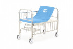 Ложе кровати: 177,5 х 75 см из высокопрочных стальных труб с ударопрочным полимерно-порошковым покрытием, высота от пола 54 см. Спинки торцевые: единая сварная конструкция с ножками, быстросборные, из нержавеющей стали, карман для карточки пациента на ножной спинке.