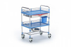 Стол манипуляционный с тремя полочками, сделанный целиком из белого пластика*, с трёхсторонними боковыми ограждениями на полках